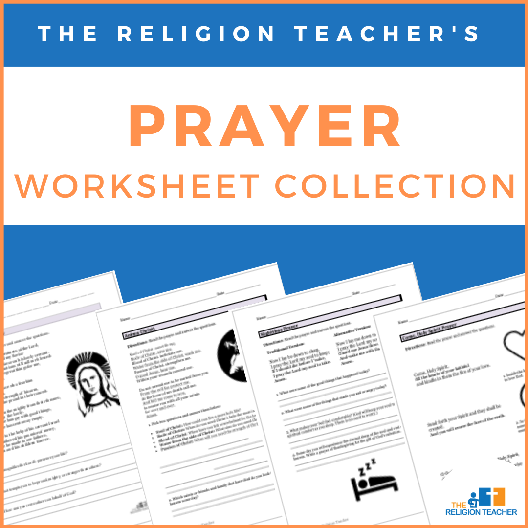 The Religion Teacher's Prayer Worksheet Collection includes thirty printable handouts to help kids meditate on the meaning of Catholic prayers and devotions.