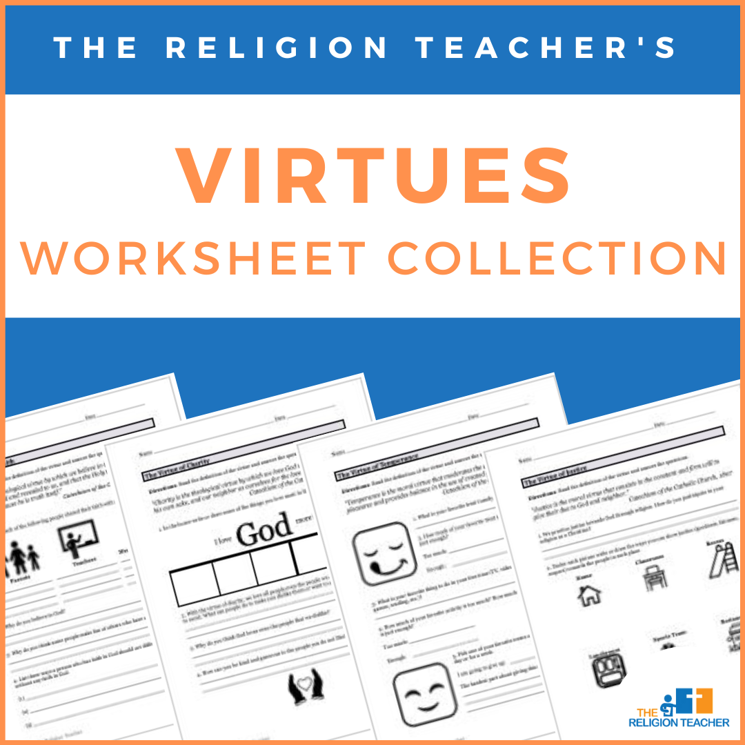 The Religion Teacher’s Virtues Worksheet Collection includes a printable handout for each of the seven Catholic virtues including the three theological virtues and the four cardinal virtues.
